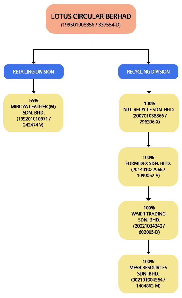 On 16 June 2023, Lotus Circular had disposed the retailing segment which included 45% of MIROZA Leather (M) Sdn. Bhd. and 100% of Active Fit Sdn. Bhd. (“AFSB”). Furthermore, the semi-active subsidiary, MESB Capital & Development Sdn. Bhd. (“MCD”) had disposed 100% on the same date. Meanwhile, Lotus Circular had acquired 3 (three) new subsidiaries which included N.U. Recycle Sdn. Bhd. (“NUR”), Waier Trading Sdn. Bhd. (“Waier”) and Formidex Sdn. Bhd. (“Formidex”). The principal activity of NUR is engaged in the provision of slitting service and trim waste sales. Whereas, Waier & Formidex’s principal activity mainly involve recycling materials.